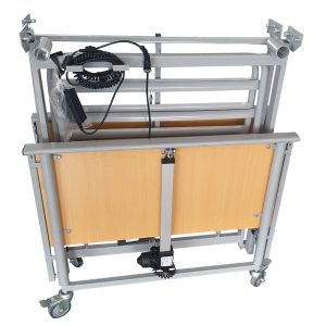 Adjustable back rest, knee break and platform height is achieved through a simple touch button hand set.